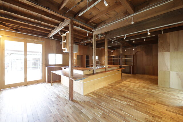 改修前の建物は、2軒の家をつなげたような特殊な形だったんですが、1階を広いワンフロアにフルリノベーション。真ん中にあった階段も撤去し、高井さんの要望だった「大きなオープンキッチン」を設置することができました。