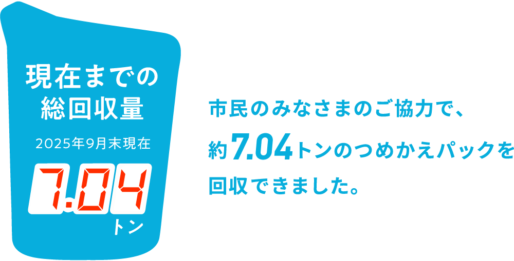 「みんなでつなげよう。つめかえパックリサイクル」市民のみなさまのご協力で、約5トンのつめかえパックを回収できました。