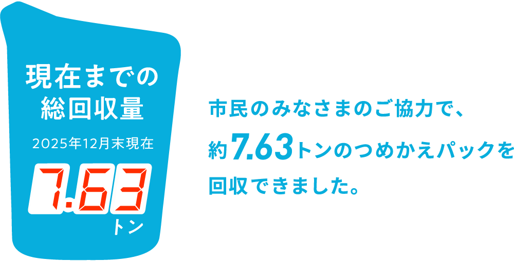 「みんなでつなげよう。つめかえパックリサイクル」市民のみなさまのご協力で、つめかえパックを回収できました。